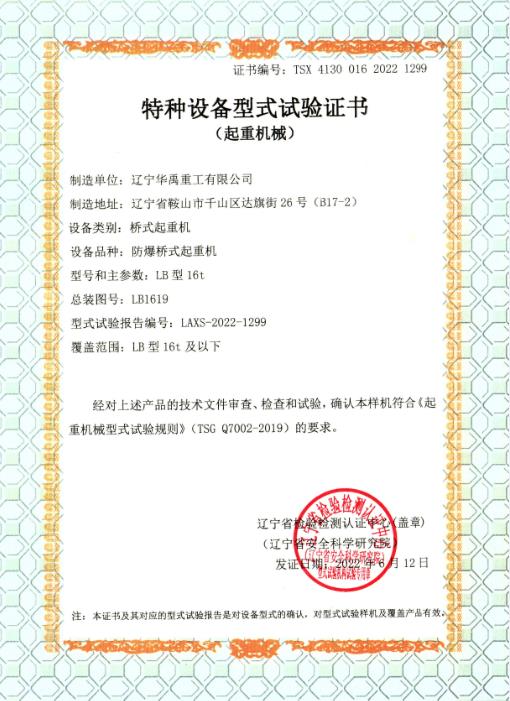 LDP電動單梁型式試驗合格證